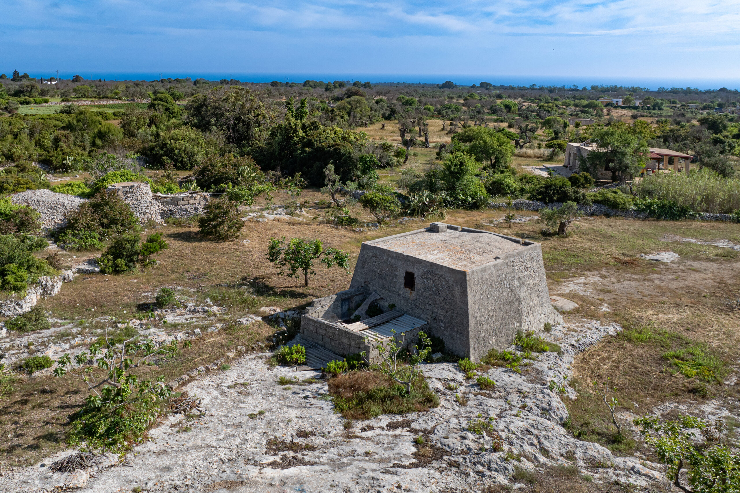 Within the property stands a characteristic liama, a traditional rural structure built with local stone that represents one of the most recognizable architectural elements of the Salento countryside. In the past, these small buildings were commonly used as storage spaces for farming tools or as shelters for farmers during long working days in the fields. The presence of this ancient structure adds further historical and landscape value to the property. Thanks to its construction features, the liama offers the possibility of being restored and transformed into a welcoming living space, with the potential to create a comfortable bedroom and a bathroom while preserving the charm of traditional local architecture.