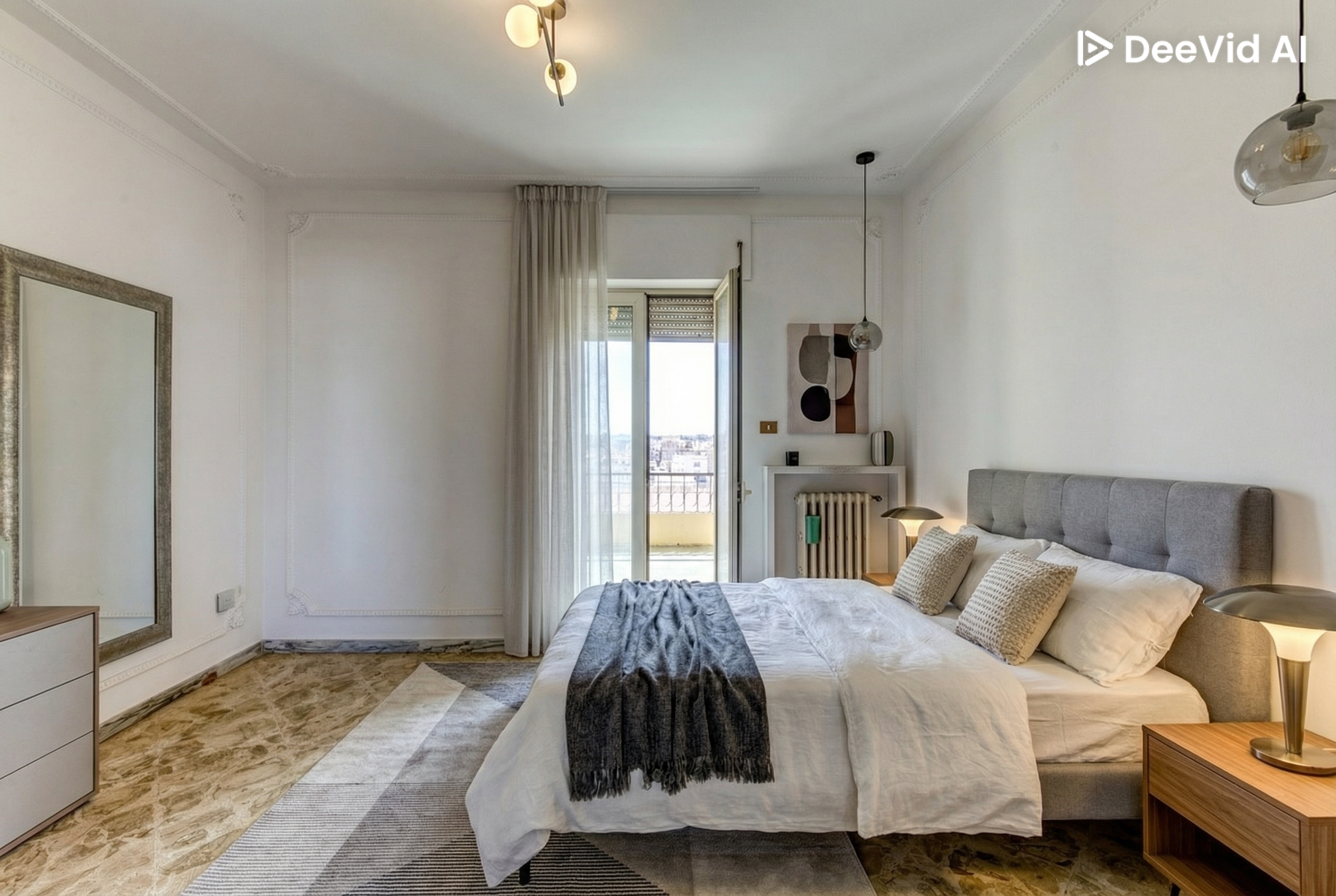 La posizione è strategica: tutti i servizi sono a portata di mano e l’accesso al centro storico è semplice e veloce. L’appartamento si trova al terzo piano di un elegante condominio di sole nove unità, facilmente raggiungibile tramite ascensore. Entrando, trovi un ampio salone luminoso con accesso al balcone principale, ideale per momenti di convivialità. La cucina è funzionale e dotata di un balcone dedicato, perfetto per creare uno spazio esterno.