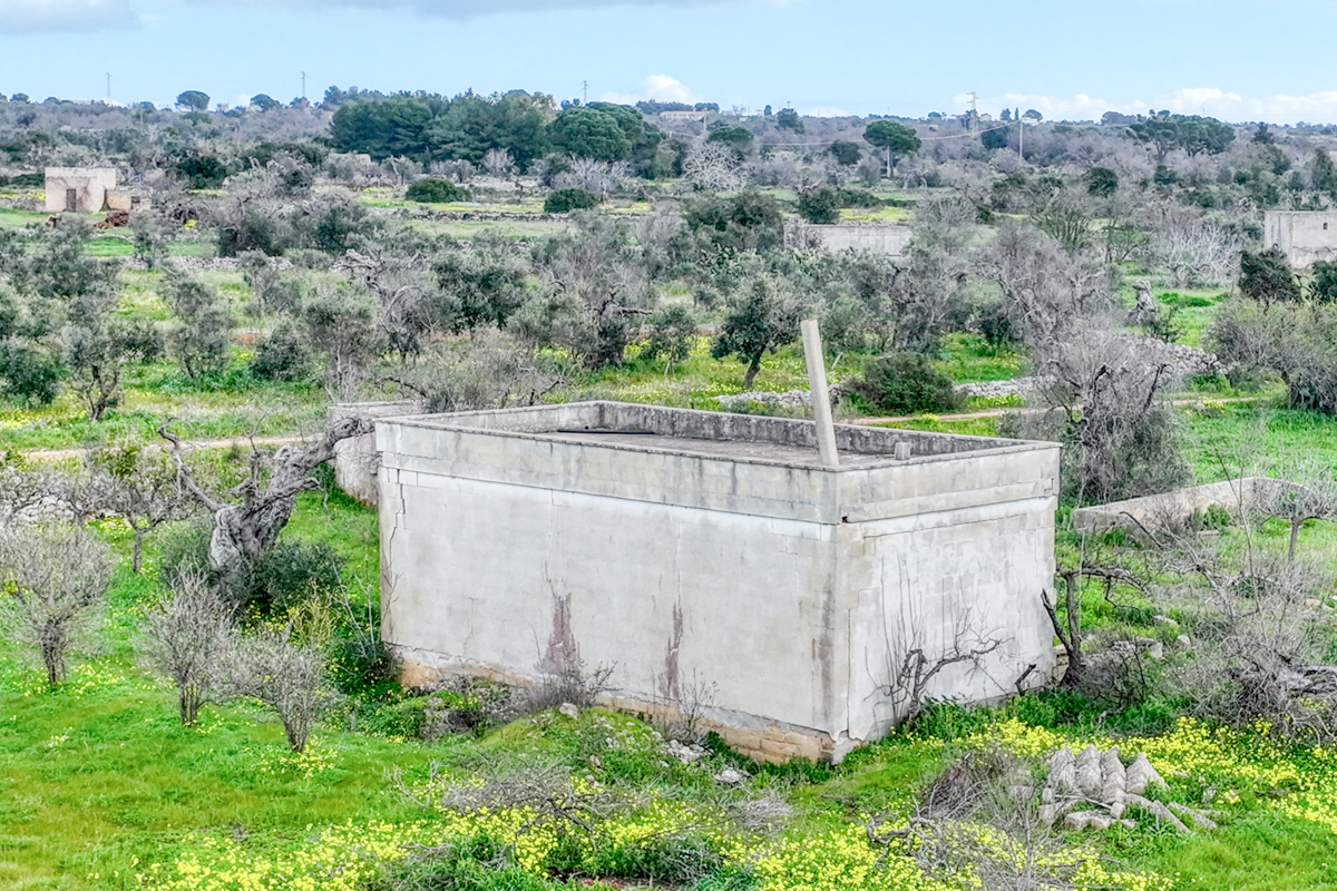 All’interno del terreno è presente un fabbricato rurale di circa sessanta metri quadrati. Attualmente la struttura si trova in condizioni molto precarie e necessita di un intervento radicale, ma proprio questa situazione apre interessanti prospettive di sviluppo. È infatti possibile procedere con la demolizione dell’edificio esistente e realizzare una nuova costruzione con una superficie fino a centoventi metri quadrati. Questa possibilità offre ampio spazio alla progettazione e consente di immaginare una casa su misura, pensata per soddisfare esigenze abitative moderne pur mantenendo il carattere autentico dell’architettura rurale salentina.