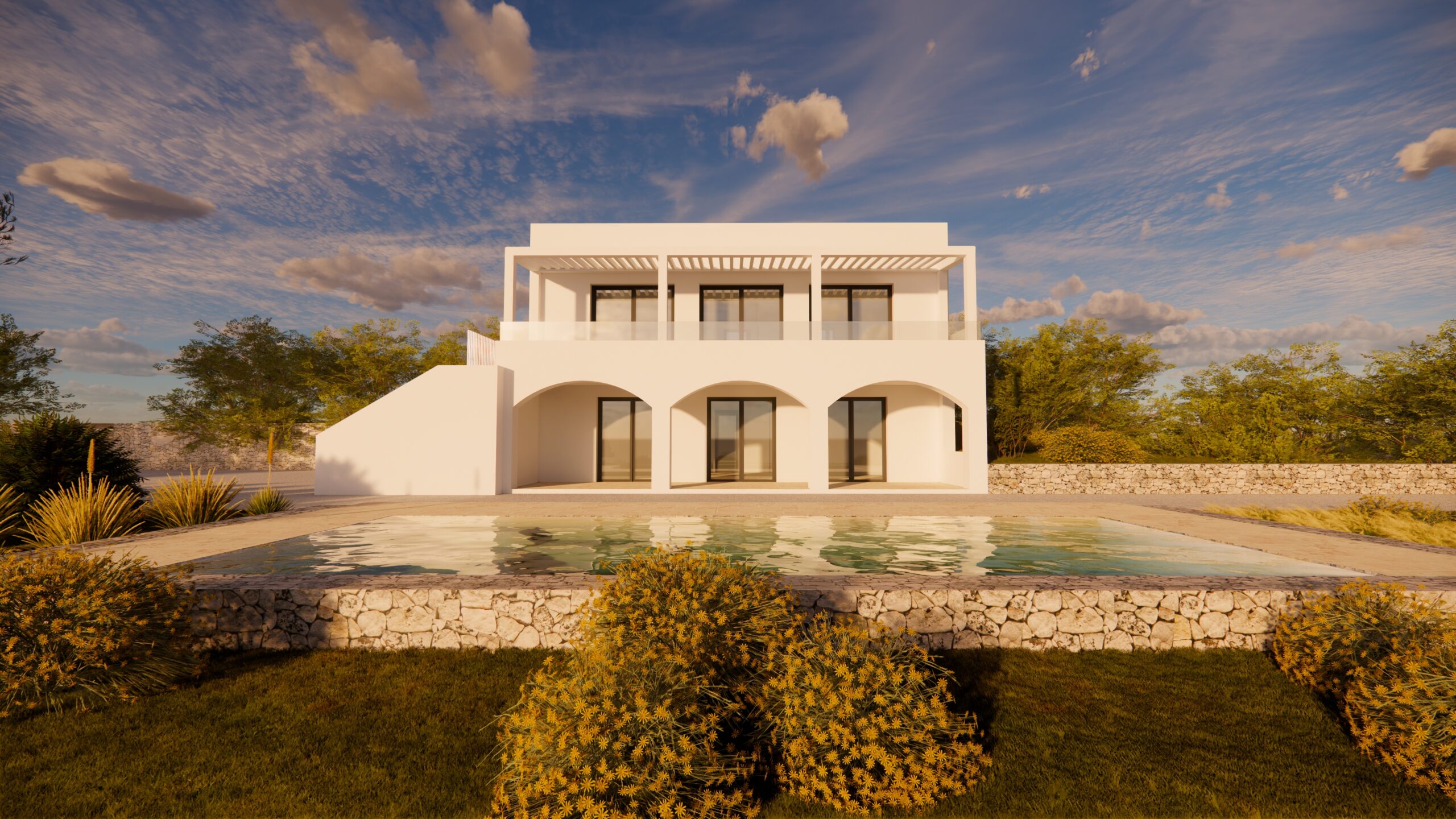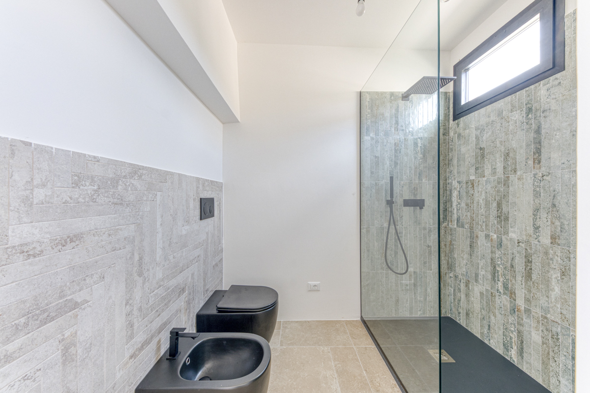 L’intervento di ristrutturazione ha riguardato in modo approfondito ogni aspetto della casa. Sono stati completamente rifatti gli impianti idrici ed elettrici, posate nuove pavimentazioni interne ed esterne e sostituiti infissi e porte interne. I bagni sono stati realizzati ex novo con materiali moderni e funzionali, mentre l’apertura delle grandi vetrate ha permesso di aumentare notevolmente la luminosità degli ambienti. Sono stati inoltre installati pannelli solari per la produzione di acqua calda sanitaria e un impianto di allarme per garantire maggiore sicurezza. Le eleganti balaustre in vetro e il pergolato ricostruito contribuiscono a valorizzare ulteriormente l’estetica della proprietà. La villa è dotata anche di un impianto fotovoltaico con batterie di accumulo e di una postazione per la ricarica di auto elettriche, soluzioni che rendono l’abitazione efficiente e attenta alla sostenibilità.