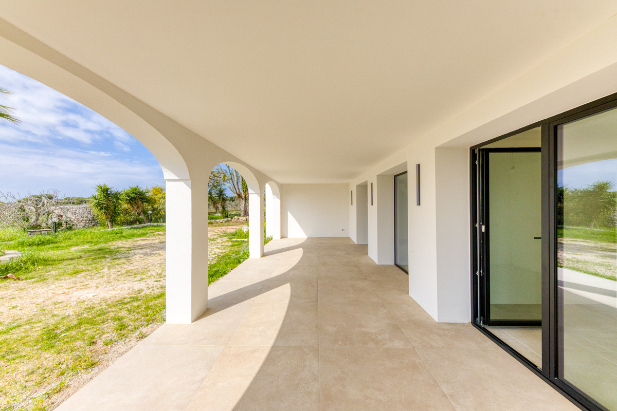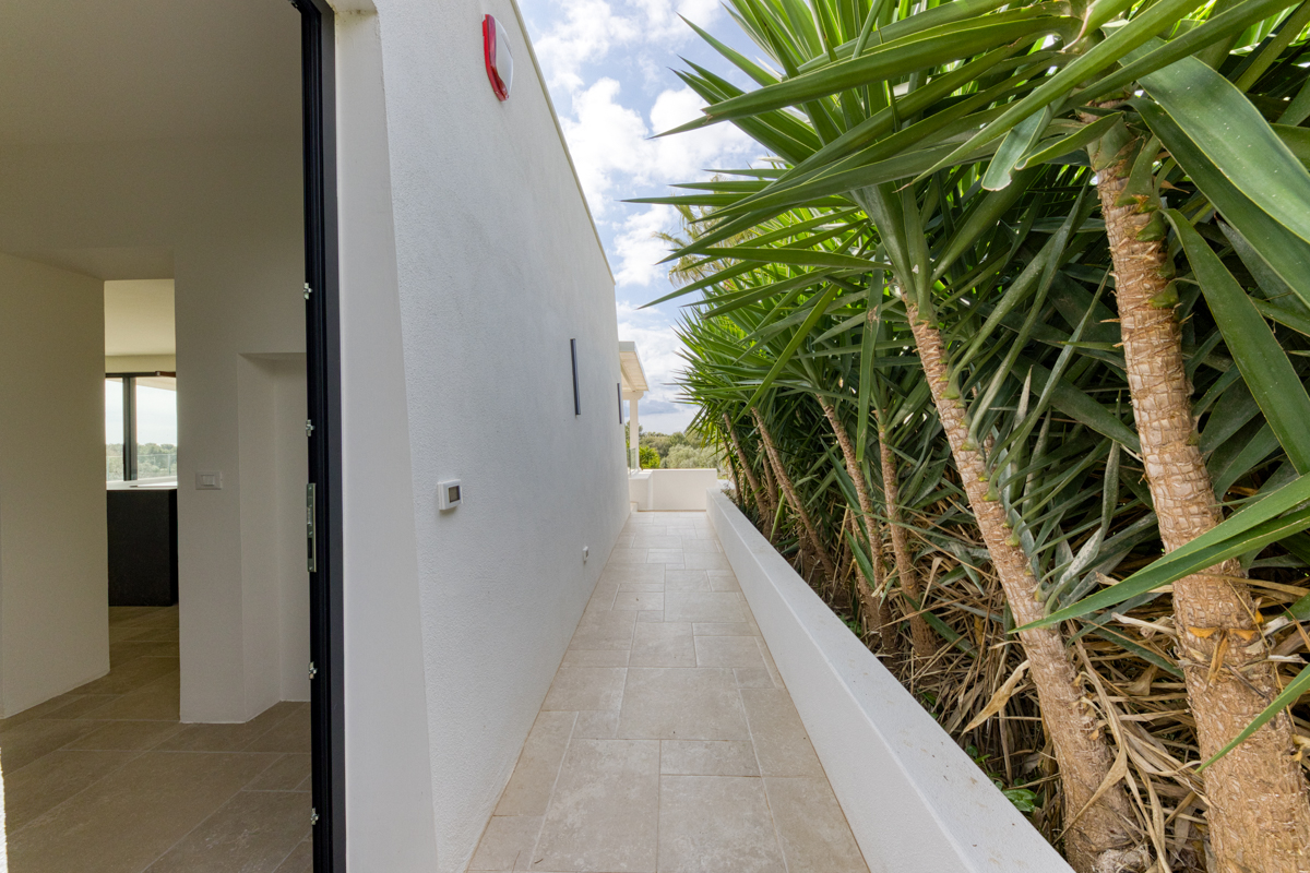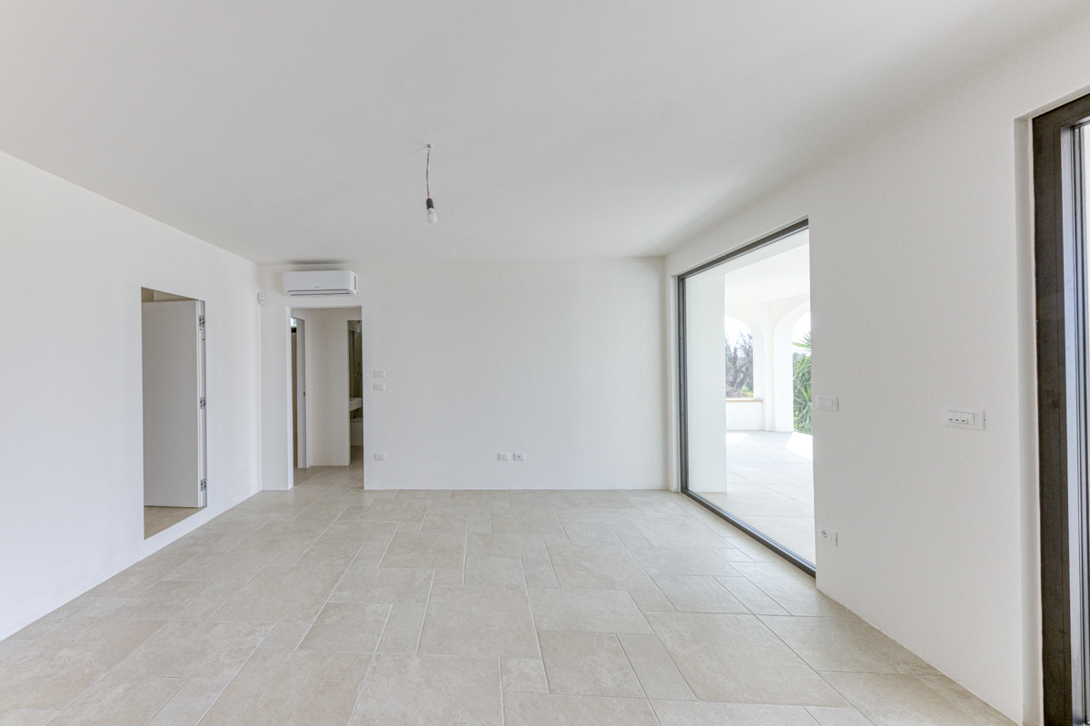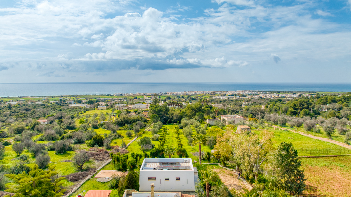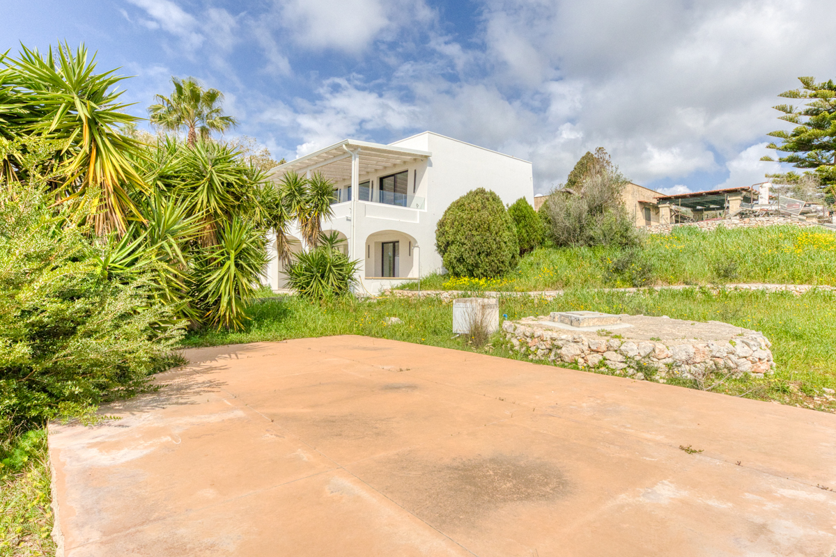 Il terreno che circonda la villa si estende per circa cinquemila metri quadrati ed è impreziosito dalla presenza di ulivi della varietà Leccino, resistenti alla Xylella, oltre a piante di fico e arbusti tipici della macchia mediterranea. La proprietà è dotata di sistema di subirrigazione per lo smaltimento delle acque reflue, di un pozzo ad uso domestico e di una cisterna per la raccolta dell’acqua potabile.